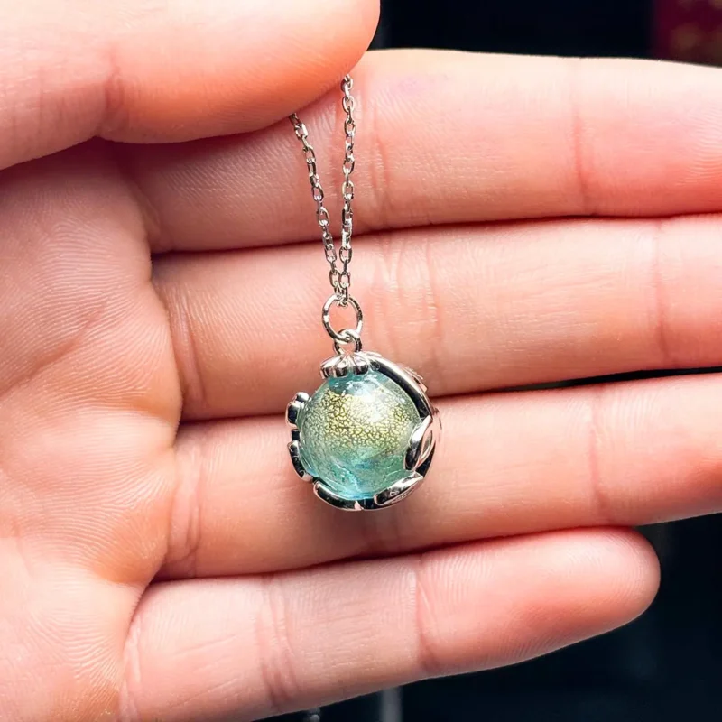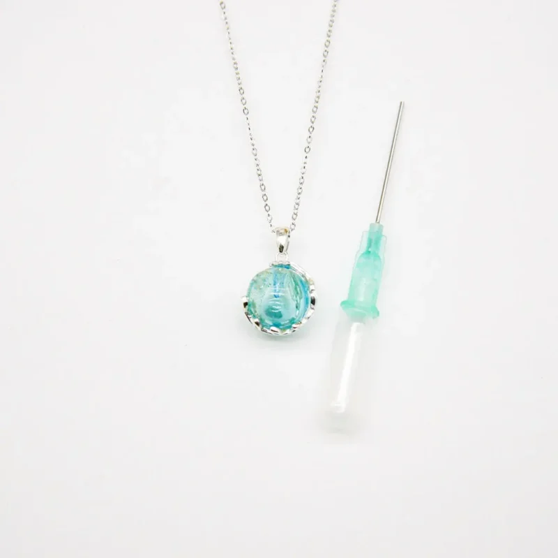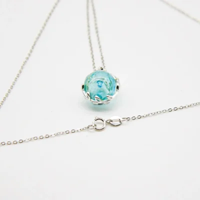 The Celestial Aqua Aroma Necklace elevates your style with a stunning aqua blue glow. Specifically, this beautiful piece offers a harmonious blend of exquisite design and timeless aromatherapy. We crafted the pendant and chain with 18k white gold plating to ensure a brilliant finish. Moreover, every Murano glass piece is meticulously hand-blown. Because each globe features delicate gold flakes, this celestial jewelry resembles a beautiful planet beyond imagination.
