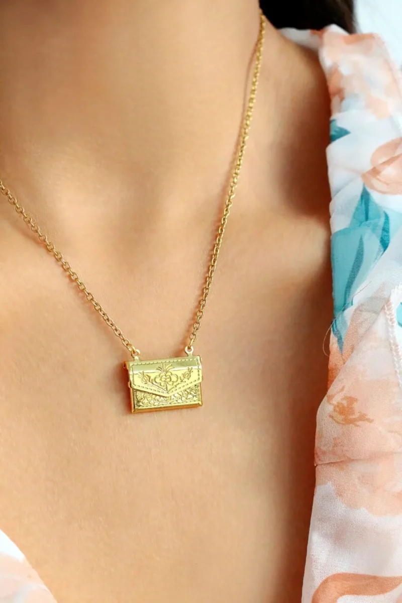 I was looking for something unique and this envelope necklace caught my eye immediately. The quality of the 24K gold plating is stunning—it has that beautiful, rich glow.